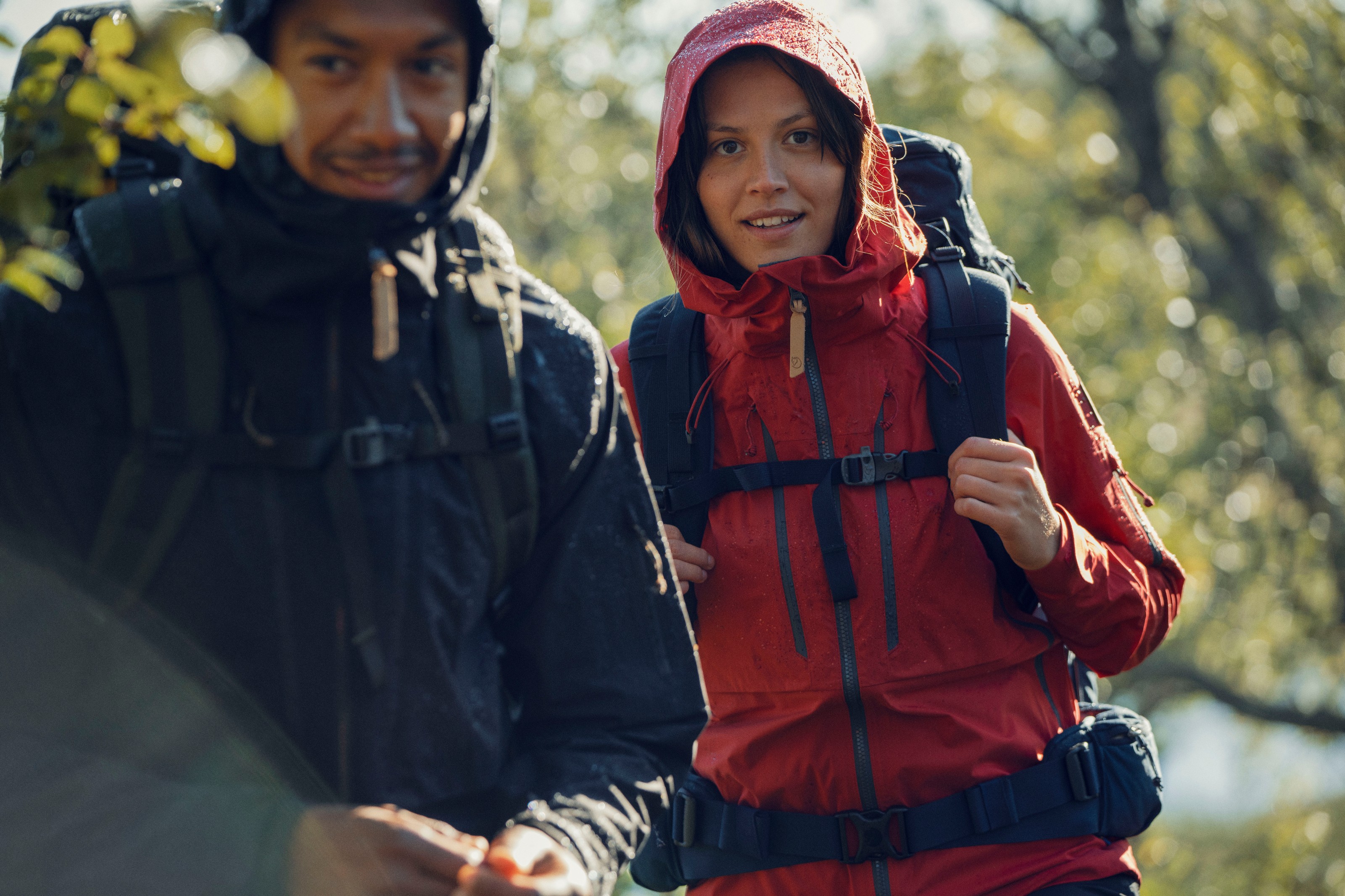 Vodný stĺpec je schopnosť materiálu odolávať tlaku vody, než ju začne prepúšťať skrz. Dá sa povedať, že čím je vyššie číslo vodného stĺpca, tým je vyššia nepremokavosť. V praxi si to môžete predstaviť tak, že pokiaľ je uvedená nepremokavosť 10 000 mm, znamená to, že je na tento materiál umiestnených 10 m vody a dovnútra neprejde ani kvapka. Nepremokavosť týchto búnd je riešená nepremokavou membránou alebo záterom. V ponuke Fjällräven nájdete "kráľovnú nepremokavosti" v podobe Keb Eco-Shell Jacket, ktorá vyniká vodným stĺpcom 30 000 mm s trojvrstvovou membránou a 26 000g/m2/24h priedušnosťou. Membránou je v tomto prípade materiál Eco-Shell. Bunda je vhodná na treking, outdoorové aktivity alebo napríklad na skialpy. Aby bola funkčnosť produktov pri náročnej aktivite ideálna, je nutné zachovať správne vrstvenie oblečenia, o ktorom sa môžete dočítať viac v tomto článku. Pokiaľ zháňate bundu na nenáročnú turistiku alebo do mesta, vystačíte si s bundou, ktorá má záter alebo dvojvrstvovú membránu a nižší vodný stĺpec (2000-5000 mm).